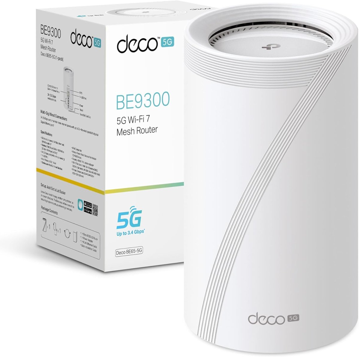 TP-Link Deco BE65-5G Router 5G WiFi 7, Wi-Fi Mesh Ultraveloce Tri-Band fino a 9214Mbps, 3 Porte 2.5Gbps, Connetti fino a 200 Dispositivi, Banda 6GHz, Multi-Link Operation, Canali 320MHz, Plug & Play